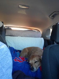 When you’re accustomed to a choice of three different beds and access to a decent sized backyard, hours in the car can be a challenge. Having been denied access to such privileges, you have one choice left: sleep.