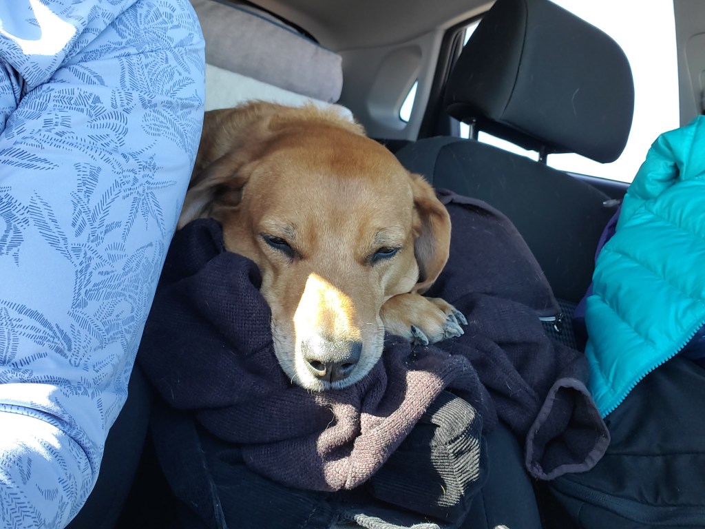 After Munday, the sun goes down. But you don’t notice because you’re strategically moving your body forward. Your attempts to claim shotgun so far have not been successful. But this might be your chance. The darkness could cause your human to forget your bed is in the backseat.