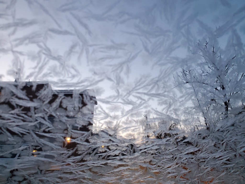 The morning view from inside the Kia Maria. There is a garage, but it’s currently full of bikes and boats and only has room for one vehicle.