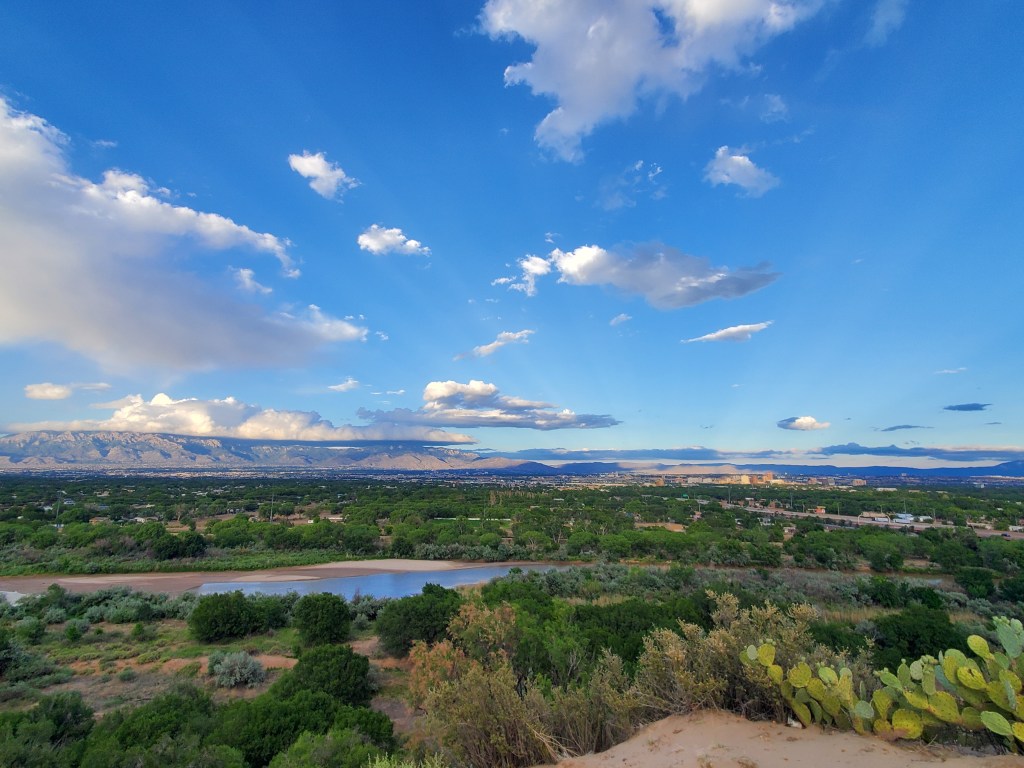 Why Albuquerque? Proximity to mountains. Waking up and seeing peaks covered with snow in the distance. Breathing clean air. Public transit: free buses, trains that take a traveler to Santa Fe and Los Lunas. Bike trails which allow a cyclist access to almost all parts of the city. Hiking trails – you don’t even need to leave ABQ to find challenging hikes and spectacular views. Breweries on every corner instead of various versions of southern Baptist churches.